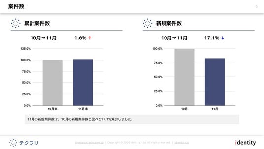 ITフリーランスエンジニアの案件・求人サイト「テクフリ」(https://freelance.techcareer.jp/)を運営する株式会社アイデンティティー(東京都港区、代表取締役:今野 力、以下「当社」)は、テクフリのデータベースをもとに2025年11月における案件の市況感を調査しました。より詳しい結果については、お問い合わせから資料請求が可能です。