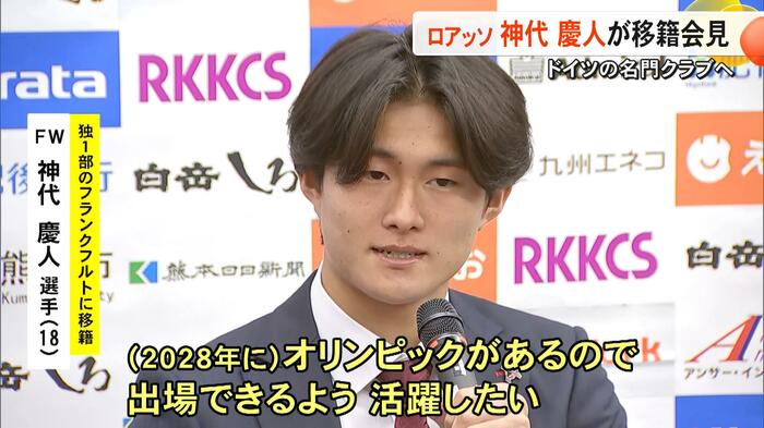 ロアッソ熊本の高校生Jリーガー神代慶人選手(18)が、12月23日に移籍会見に臨んだ。