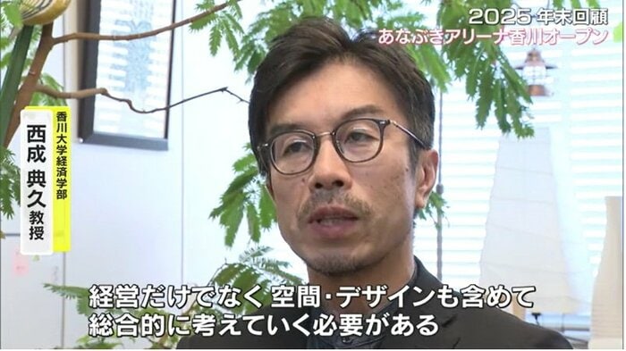 都市計画やまちづくりに詳しい香川大学経済学部の西成典久教授は、ここまでのアリーナの動きについて「アリーナができて海側に人流が変わった。これまでになかったような高松駅前の光景やそれがまちなかに波及したり、アリーナができたことでこれまでになかった都市のにぎわいや人流が生み出されてきている」と評価した。
