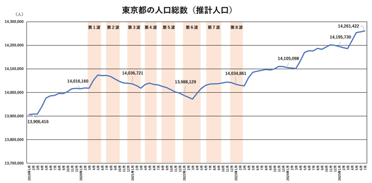 出典:東京都「東京都の人口(推計)」(各月1日現在の推計)をもとにGLMが作成