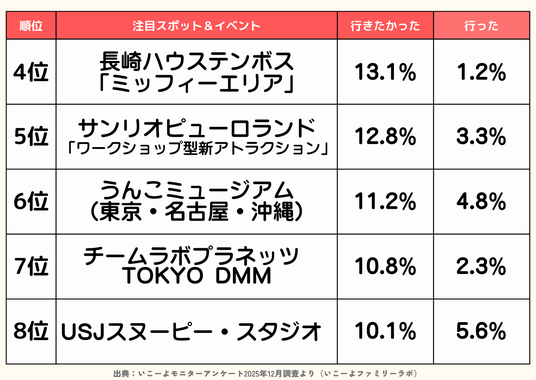 <<2025年の新規開業テーマパークや注目イベントで「行きたかった」ランキング ハイライト>>