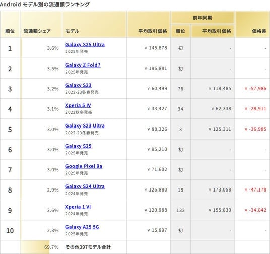 【1位】 3.6% Galaxy S25 Ultra 2025年 ¥145,878 / 初 - -