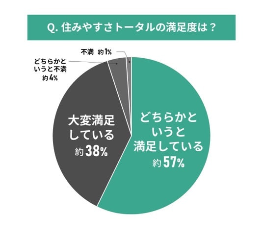 住みやすさ総合評価では約96%の住民が満足しており、非常に高い評価を得ています。