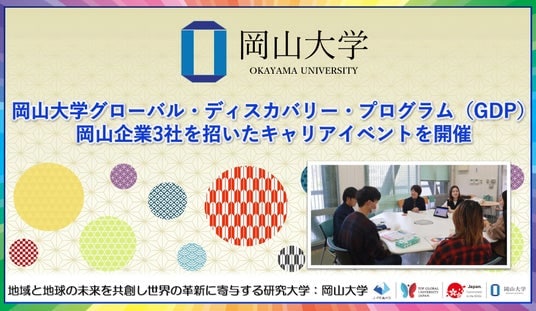 国立大学法人岡山大学(本部:岡山市北区、学長:那須保友)のグローバル・ディスカバリー・プログラム(GDP)で2025年11月8日、授業の一環として岡山県内の企業3社を招いたキャリアイベントを開催しました。