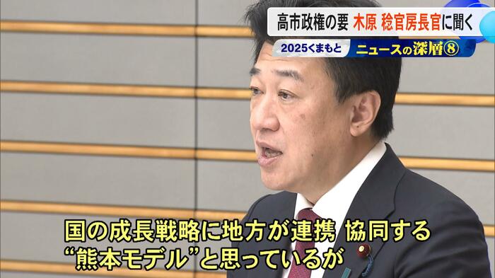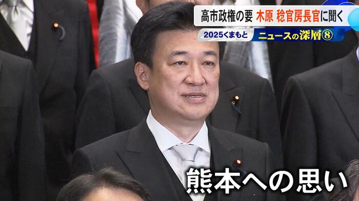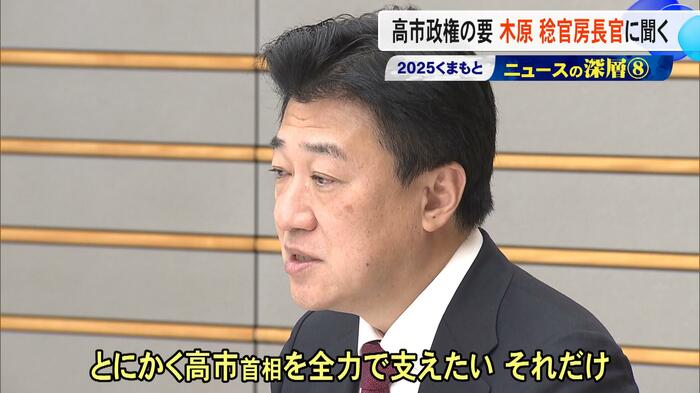 シリーズで伝える『くまもとニュースの深層』。10月に誕生した高市内閣の要・木原稔官房長官。初の臨時国会を終え、2025年12月18日に官邸で取材に応じ、熊本の今後の展望などについて取材した。
