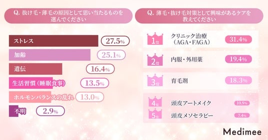 今回の調査では、AGA・FAGA治療や頭皮アートメイクといった薄毛・抜け毛対策に対し、多くの人が関心を持っていることが明らかになりました。