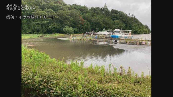 内浦にある港は地震で地盤が沈下。2025年8月の大雨では冠水被害にもあった。