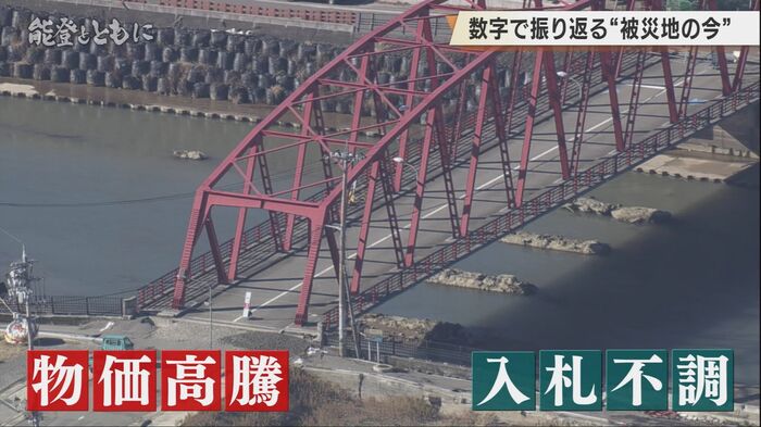 また道路は県が管理する5路線10カ所で、奥能登の市や町の管理では194路線が通行止めとなっています。大規模な崩落や橋の架け替えの影響に加え珠洲市などでは物価高騰の影響で入札に応じる業者がなく、不調に終わるケースが相次いでいるということです。