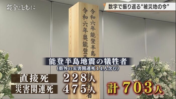 2025年12月26日には、新たに5人が県の合同審査会で認定され、各自治体が正式に認定すれば能登半島地震で亡くなった人は、直接死が228人、災害関連死が475人のあわせて703人となります。また、奥能登豪雨では、関連死4人を含む20人が犠牲となりました。