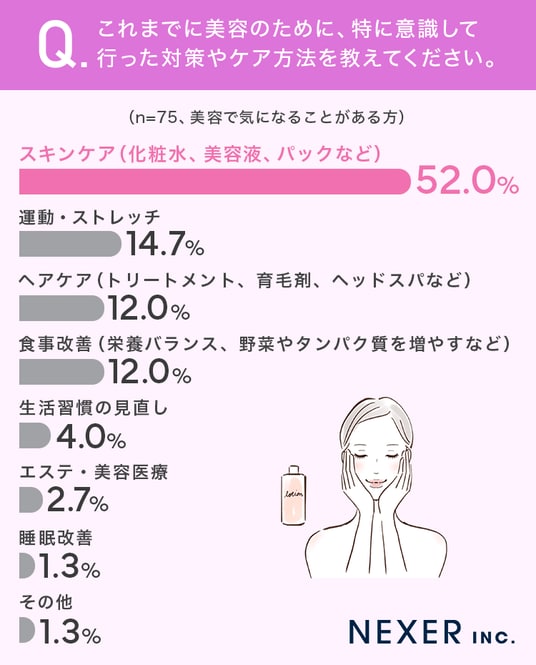 続いて、美容のために意識して行ったケア方法を聞いてみました。