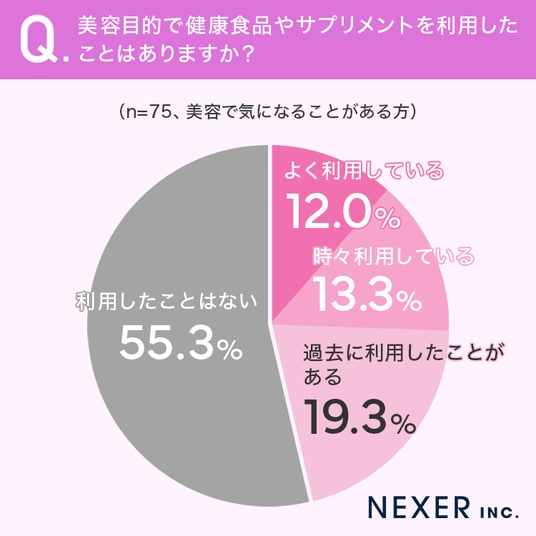 さらに、美容目的で健康食品やサプリメントを利用したことがあるか聞いてみました。