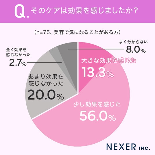 ■56%が美容ケアに対して「少し効果を感じた」と回答
