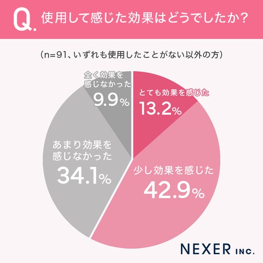 42.9%が「少し効果を感じた」13.2%が「とても効果を感じた」と回答し、合計で半数以上が何らかの実感を得ていることがわかりました。
