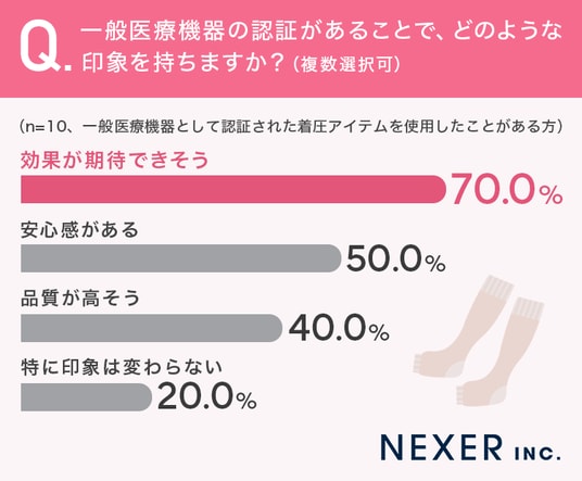■70%が一般医療機器として認証された着圧アイテムは「効果が期待できる」と回答