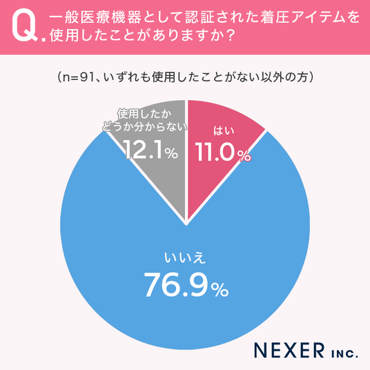1割以上の方が、一般医療機器として認証された着圧アイテムを使用したことが「ある」と回答しています。