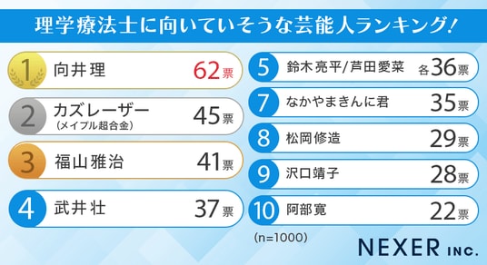 株式会社NEXER・理学療法士に向いていそうな芸能人に関する調査