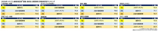 『高校生 通信教育』評価項目別ランキング(2026年 オリコン顧客満足度(R)調査)