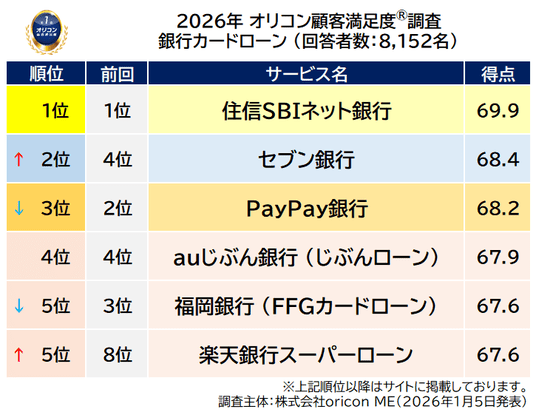 2026年 オリコン顧客満足度(R)調査 銀行カードローン