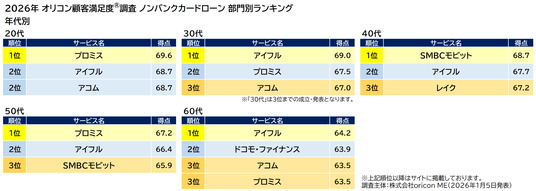 2026年 オリコン顧客満足度(R)調査 ノンバンクカードローン