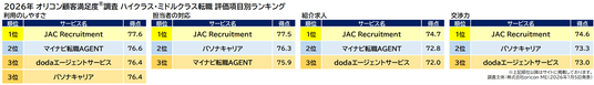 『ハイクラス・ミドルクラス転職』総合ランキング(2026年 オリコン顧客満足度(R)調査)