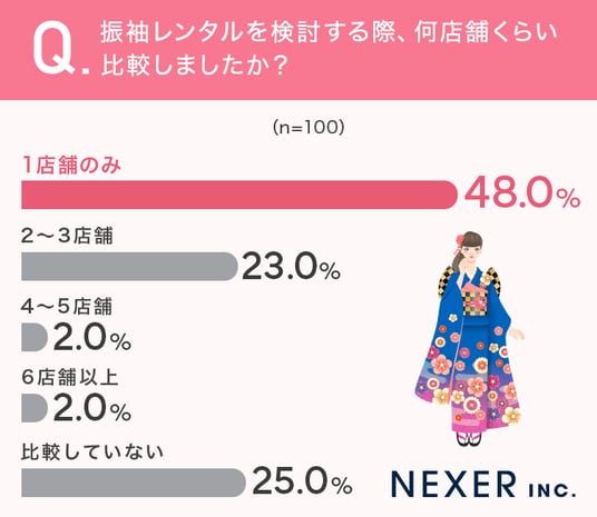 次に、振袖レンタルを検討する際、何店舗くらい比較したのか聞いてみました。