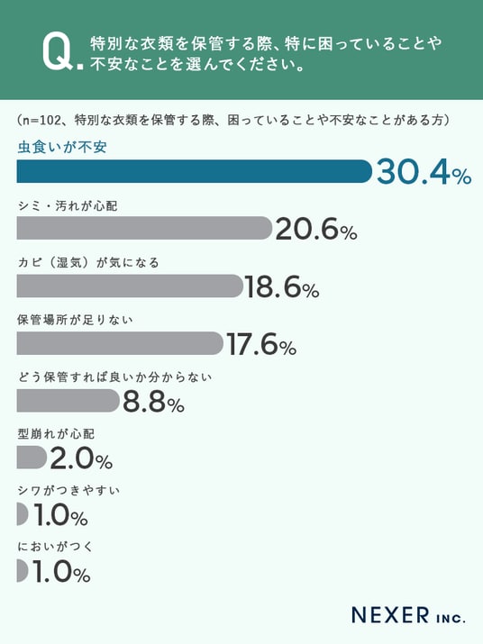 特別な衣類の保管で多かった不安は「虫食い」で約3割を占めました。
