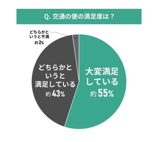 住みやすさの総合評価では約95%の住民が満足しており、非常に高い評価を得ています。物価や治安に課題はあるものの、交通の利便性や商業施設の充実度が総合的な満足度を押し上げています。