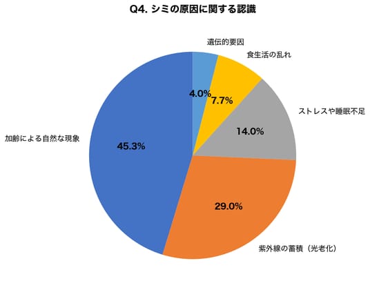 【調査結果】シミの主因は「加齢」と誤認している人が45.3%、紫外線蓄積が原因と理解している人は29.0%