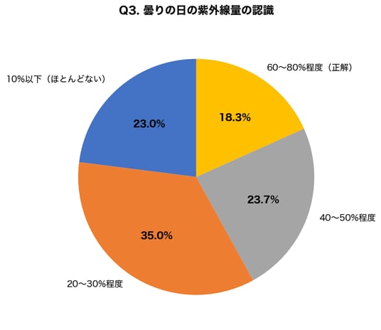 ・曇りの日の紫外線量を正しく理解している人はわずか18.3%にとどまる