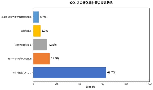 【調査結果】冬に紫外線対策を「全くしない」人が62.7%、年間を通じた対策実施者は1割未満