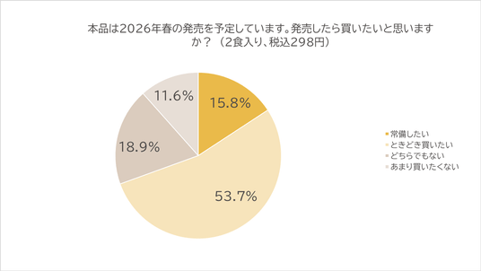 事前のアンケートでは、冷や汁について「知っているが、ほとんど食べない(53.7%)」「この商品で初めて知った(15.8%)」と、約7割が冷や汁に馴染みがありませんでした。しかし、実際に本品を試食した後には、69.5%が「発売したら買いたい」(「買いたい」「ときどき買いたい」の合算)と回答 。馴染みが薄い「冷や汁」も、きっかけがあれば食卓に入り得る”メニューであるとわかりました。