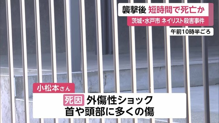 茨城県水戸市のアパートでネイリストの女性が殺害された事件で、女性は襲われた後、短時間で死亡したとみられることが分かった。