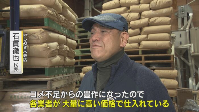豊作でコメがあふれているにもかかわらず、値段が下がらない理由は何故なのか。石貫徹也代表は「コメ不足からの豊作になったので、各業者が大量に高い価格で仕入れている」と説明する。令和のコメ騒動で業者間の競争が激化し、コメの仕入れ値が高騰しているためだ。