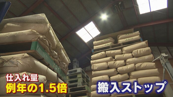 今シーズンのコメは豊作で、例年の1.5倍近い仕入れ量となっていて、一時的に搬入をストップしている状態なのだ。