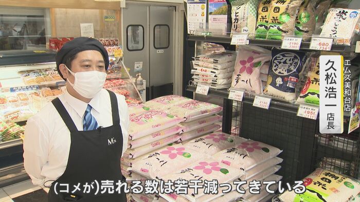 『エムズ美和台店』店長の久松浩一さんは「コメが売れる数は若干減ってきている。これ以上高くなり過ぎると、買われる側にとってはすごく不便になってくると思う」と不安を口にする。