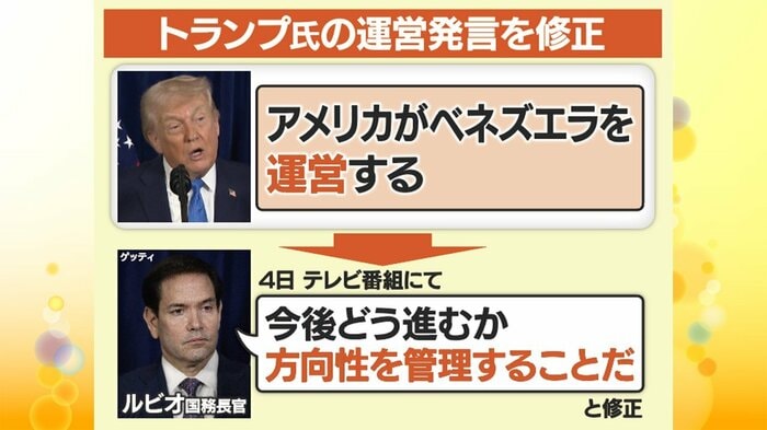 ――トランプ氏はアメリカがベネズエラを「運営する」といった趣旨の発言をしていましたが、4日にはルビオ国務長官が「方向性を管理する」といった言葉に修正しました。この意図は?