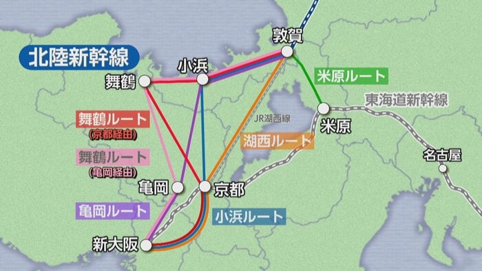 維新はいまも着工に至っていない小浜・京都ルートを見直し、8つのルート案の費用対効果を評価するよう求めている。与党のプロジェクトチームは今年、ルートの再検討に入る予定だ。