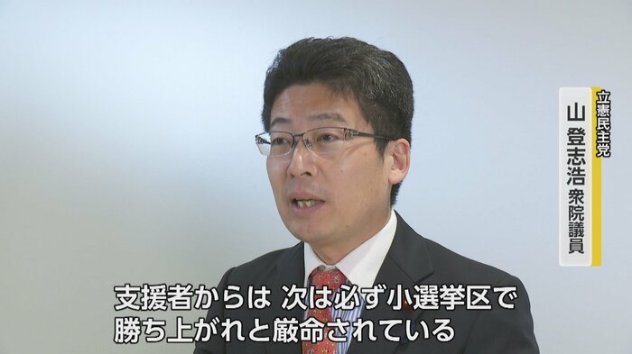 この状況に対し、おととしの衆院選で田畑議員に僅差で敗れたものの比例復活を果たした立憲民主党の山登志浩衆院議員は「田畑さんであろうがそれ以外の方であろうが、自民党は必ず公認候補を擁立する。支援者からは次は必ず小選挙区で勝ち上がれと厳命されている」と語り、「小選挙区で勝ち上がるよう死力を尽くしていく覚悟」を示した。