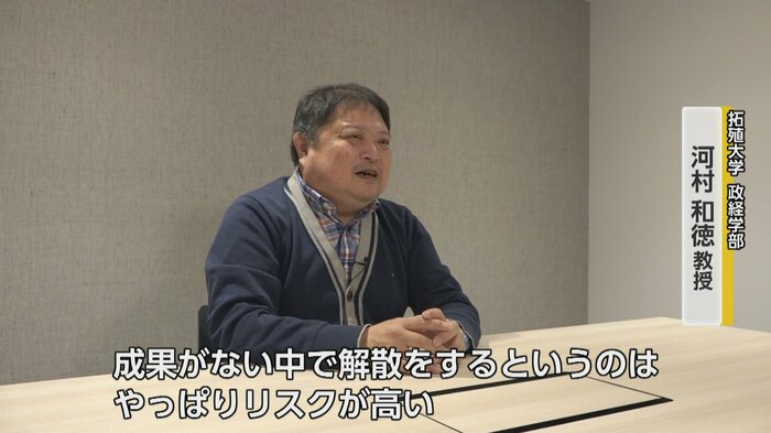 拓殖大学政経学部の河村和徳教授も「解散総選挙を仮にするとした時に、今まで予算を組んで執行していないわけですから、よくこの高い人気のうちに解散をしてしまえという乱暴な意見がありますけれども、成果がない中で解散をするというのはやっぱりリスクが高い」と述べ、今年の解散は可能性が低いとの見解を示した。