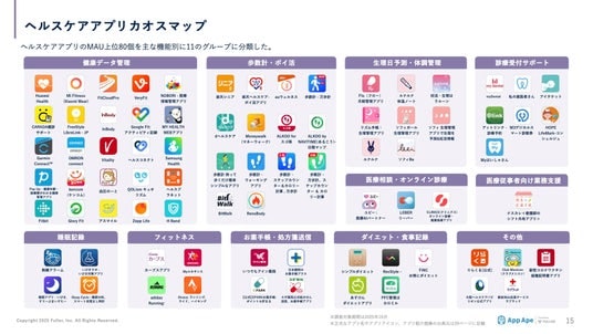 フラー株式会社(本社:新潟県新潟市、代表取締役社長:山崎将司、以下「フラー」)は、アプリ市場分析サービス「App Ape(アップ・エイプ)」に蓄積されたデータをもとに、健康・ヘルスケアアプリの動向や特徴をまとめた「健康・ヘルスケアアプリ市場調査レポート2025」を公開しました。