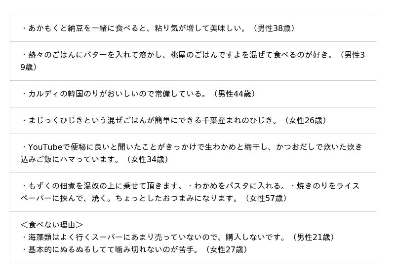 ☆よく食べる海藻類/海藻類を食べない理由(全5,191件)