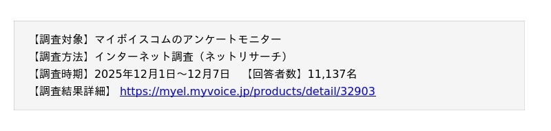 調査結果を掲載・引用いただく場合は、必ず「マイボイスコム調べ」もしくは「マイボイスコム(株)調べ」と表記をお願いいたします。