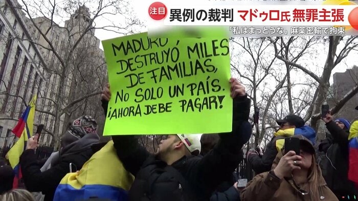 裁判所周辺には、マドゥロ大統領の拘束賛成派やトランプ大統領の手法に反対する人々が集まり、それぞれの主張をぶつけ合っていた。