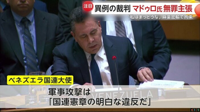 アメリカのトランプ政権による軍事作戦で身柄を拘束されたベネズエラのマドゥロ大統領は5日、ニューヨーク市の裁判所に初めて出廷し、麻薬密輸に関与した罪などについて無罪を主張した。また国連の安全保障理事会は5日、アメリカによるベネズエラ攻撃を協議する緊急会合を開いた。