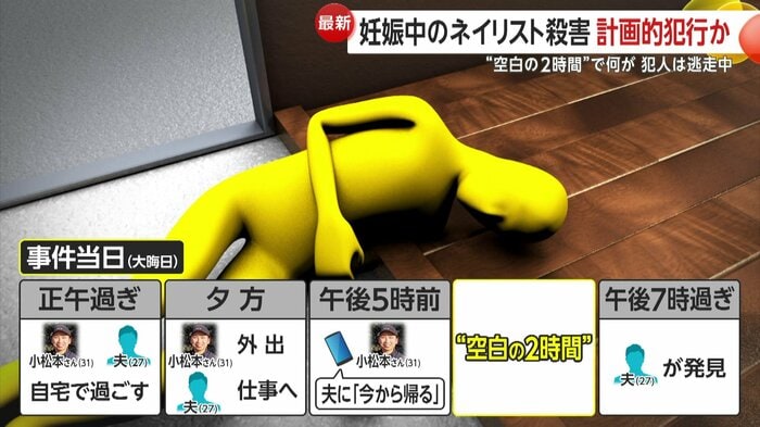 小松本さんは妊娠していて、お腹の赤ちゃんを守ろうとしたのか、あざや傷などの防御創もあった。