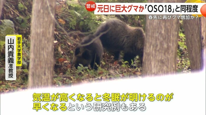 だいたい3月ぐらいまで冬眠すると言われているけど、気温が高くなると冬眠が明けるのが早くなるという研究例もある。春が早くやってくると(クマが)早めに目覚めてしまって、ただ山の方にはまだエサがない、街中にエサがあることを学習してしまった個体が、街中に急に出没する可能性がある。