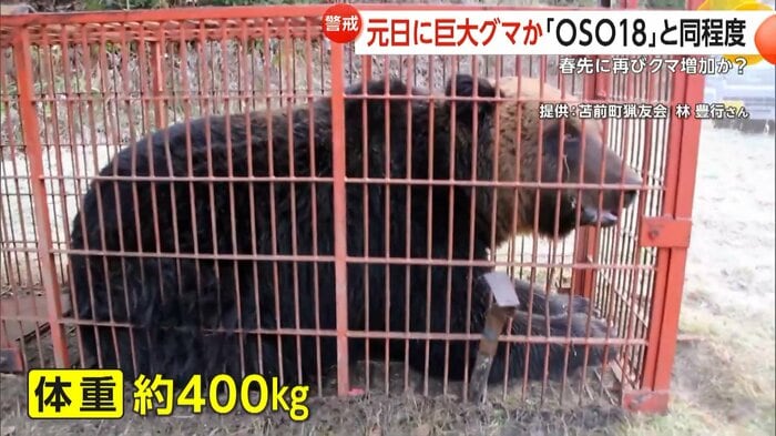 北海道・苫前町では、体重約400㎏の巨大なクマが箱ワナによって捕獲された。