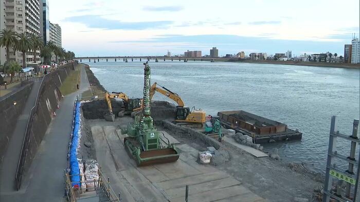1月5日午後1時30分ごろ、宮崎市役所から南東におよそ300メートルの地点で、重機で大淀川の掘削工事をしていた作業員が、不発弾のようなもの1個を川底からすくい上げた。