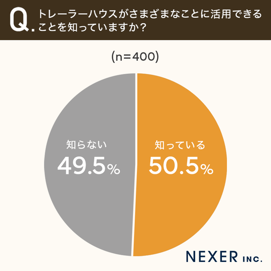 ■50.5%が、トレーラーハウスの活用法が多岐にわたることを「知っている」と回答