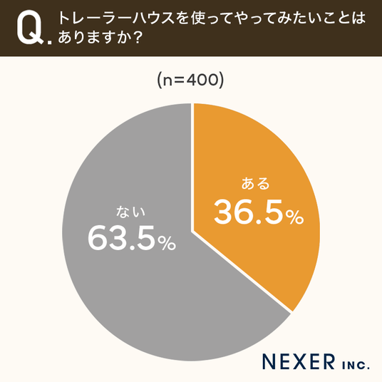 36.5%が、トレーラーハウスを使ってやってみたいことが「ある」と回答しています。